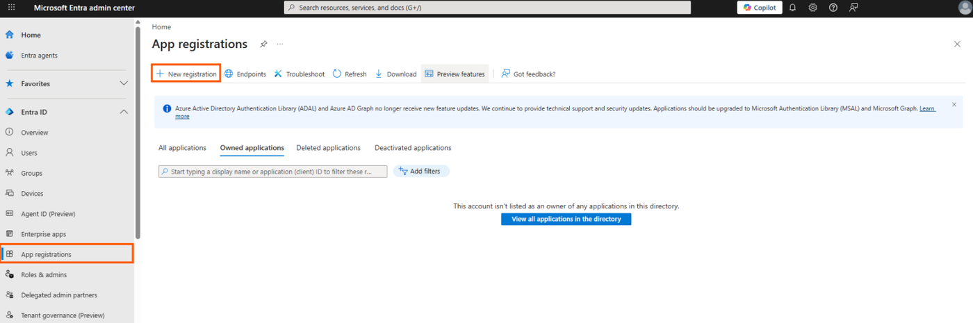 Navigate to Entra ID > App registrations (located in the left sidebar).