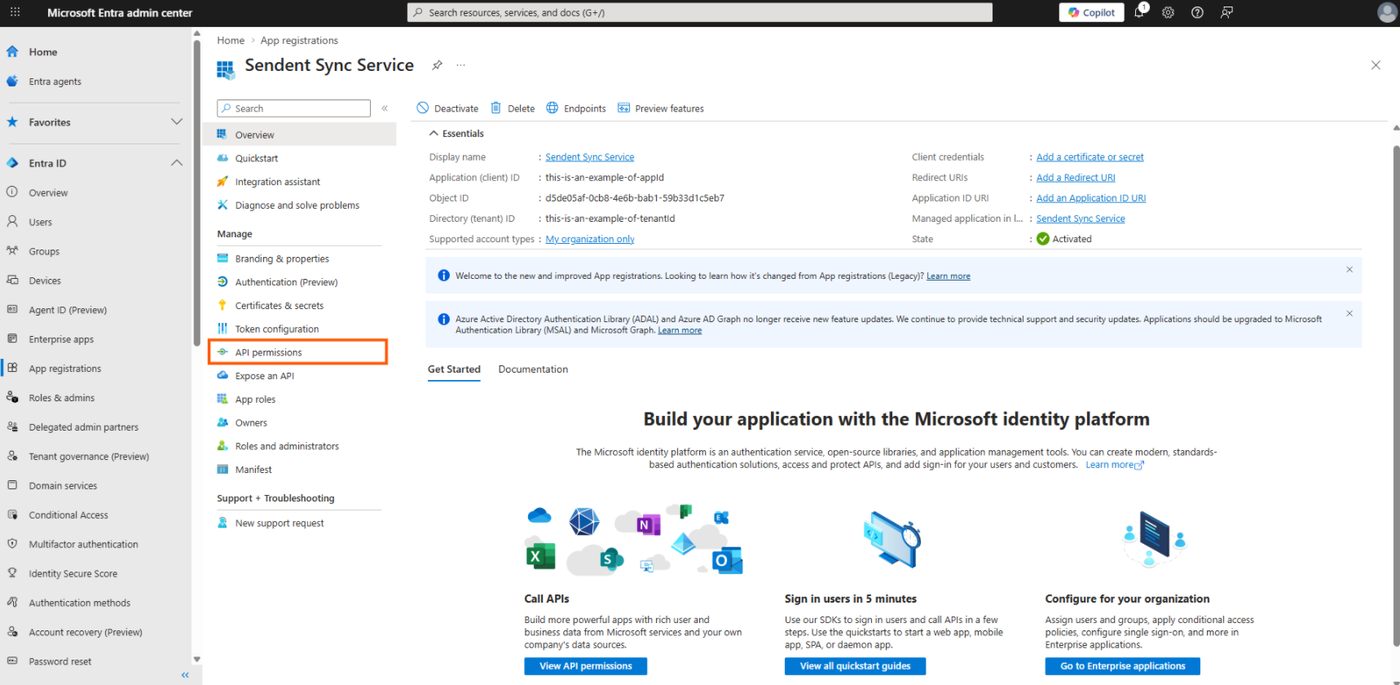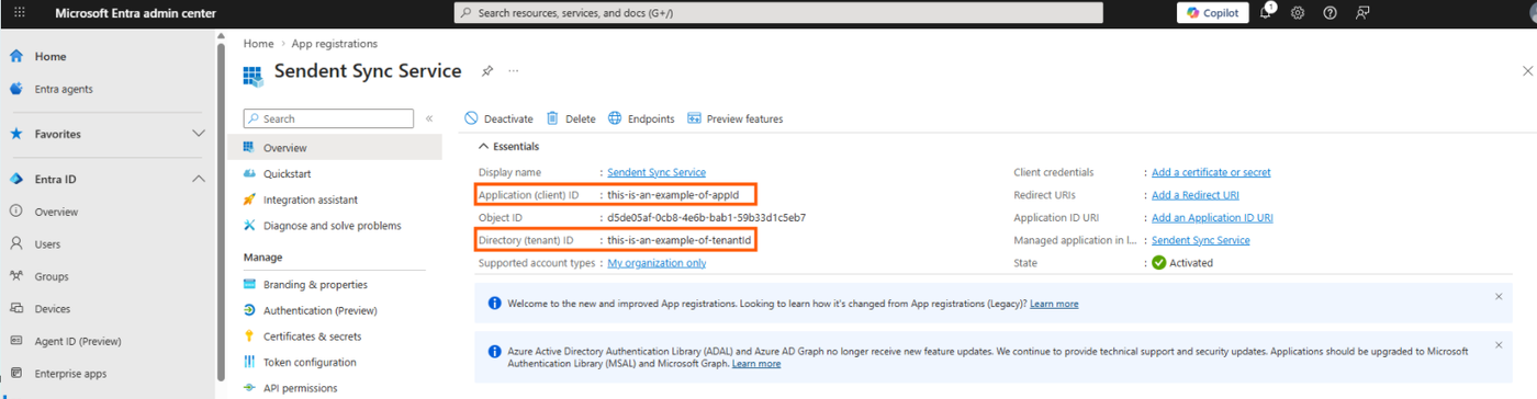 Application (client) ID(This will be your AppId)Directory (tenant) ID(This will be your TenantId)