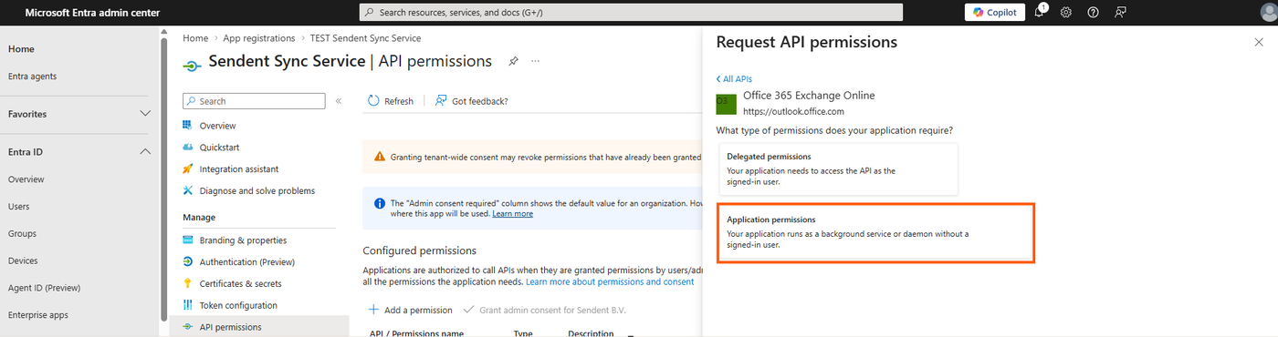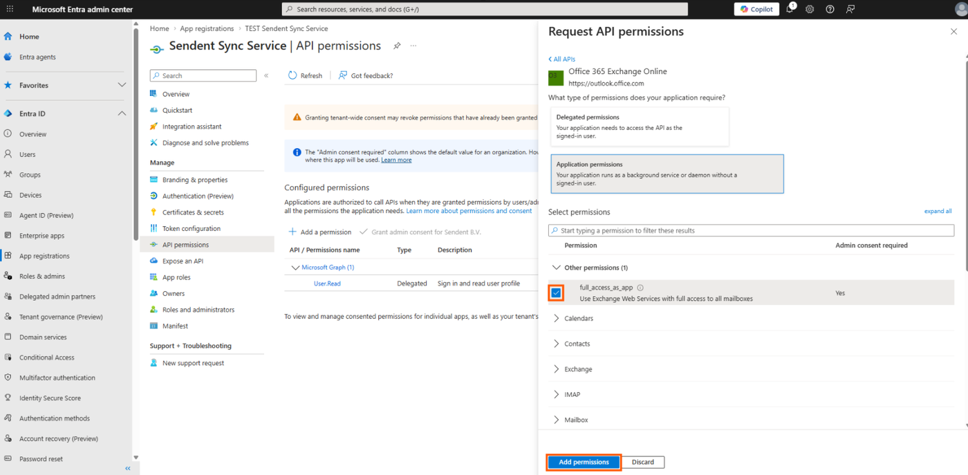 Why this is needed: The connector operates as a background daemon (server-to-server) without a signed-in user present. It requires "Application permissions" with the full_access_as_app role to impersonate users and sync their calendars and contacts.