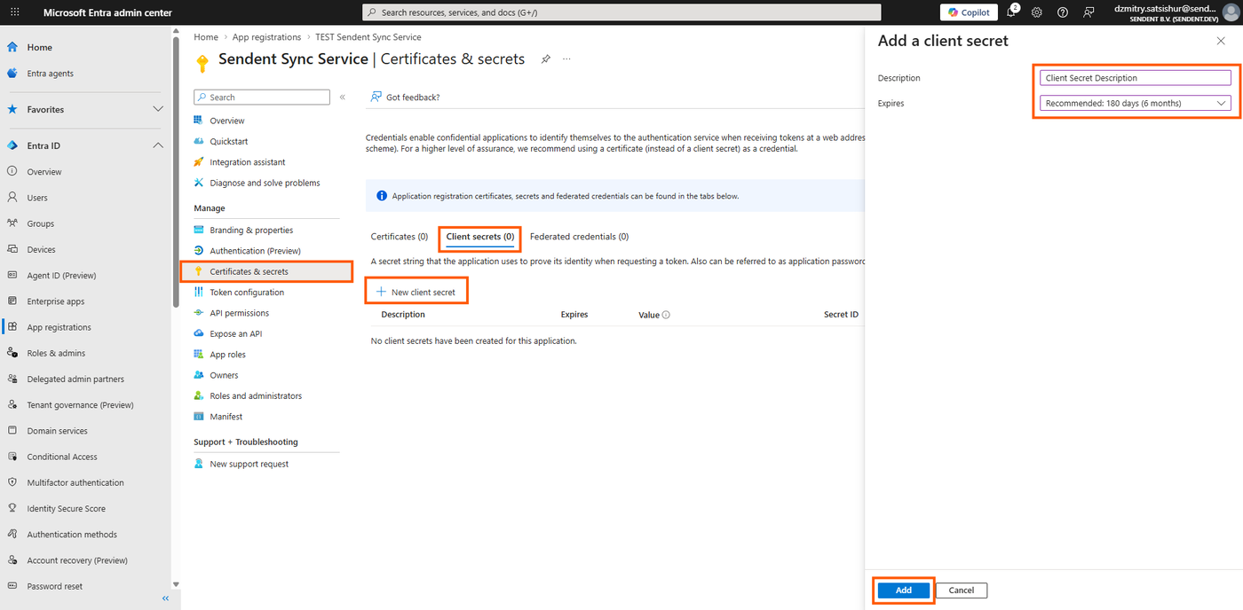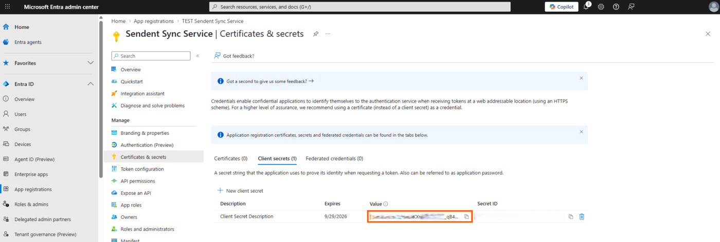 Why this is needed: The Client Secret acts as the password for your newly registered application, proving its identity to Microsoft Entra ID when requesting an access token.