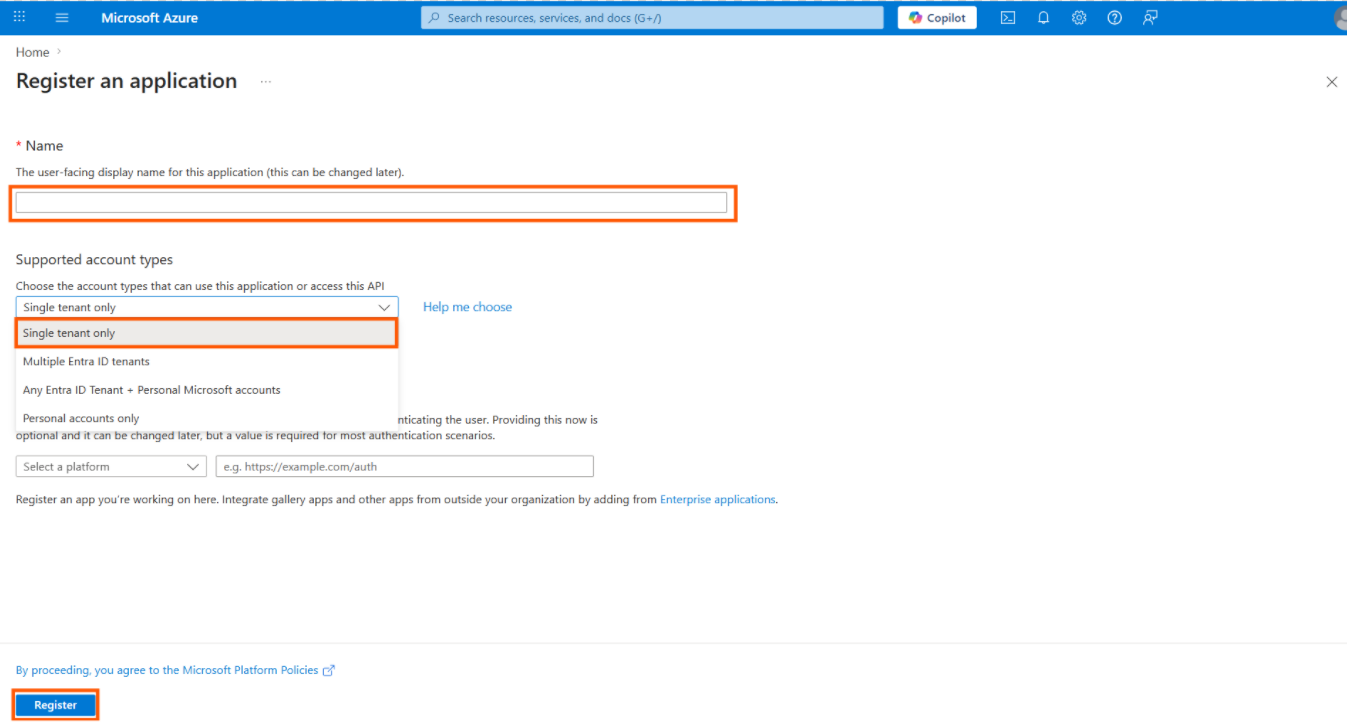 Why this is needed: Registering the application generates a unique Application (client) ID and Directory (tenant) ID. These identifiers act as the routing credentials for your connector to securely communicate with the Microsoft 365 cloud.