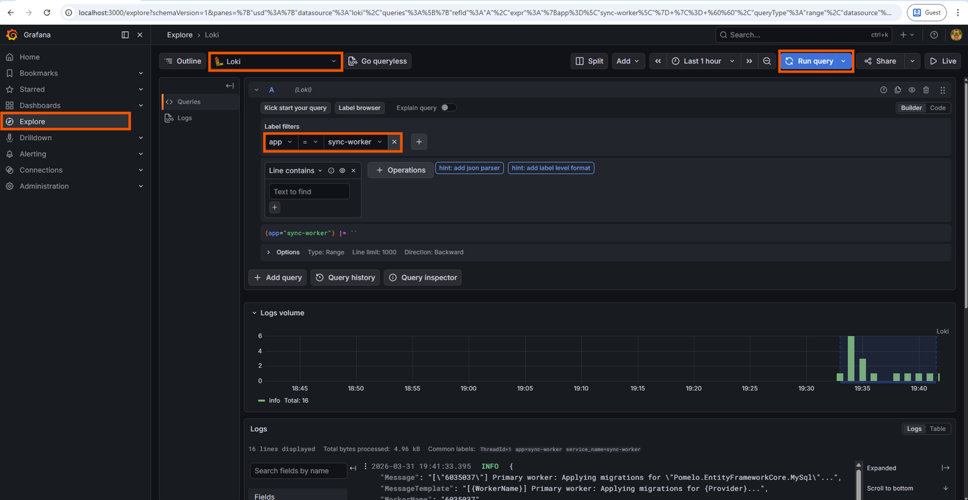 GRAFANA_USERandGRAFANA_PASSWORDvalues you set in your.envfile.In the left sidebar, click the Explore icon (a compass symbol).