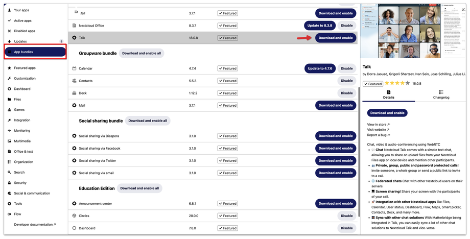 4. Search for the missing app/dependency and click the Download and Enable button.