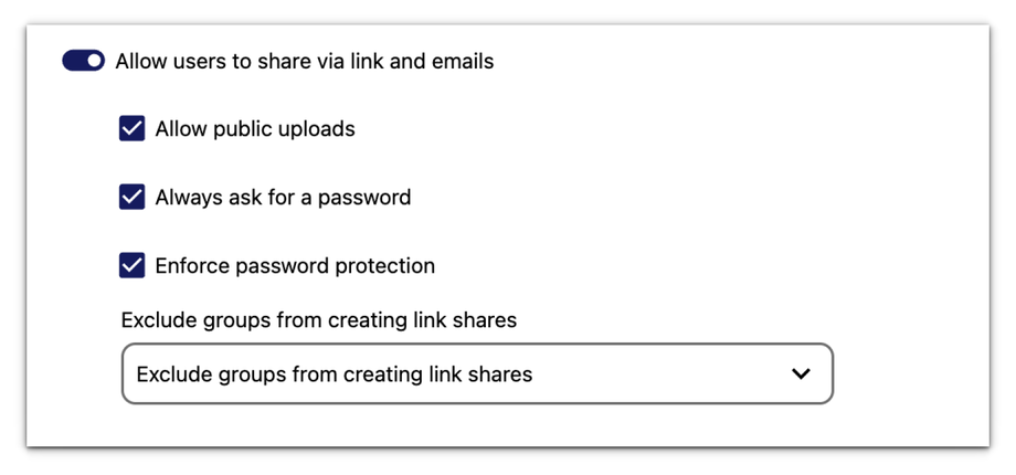 Check Enforce password protection to force users to set a password on all public share links. This does not apply to local user and group shares.