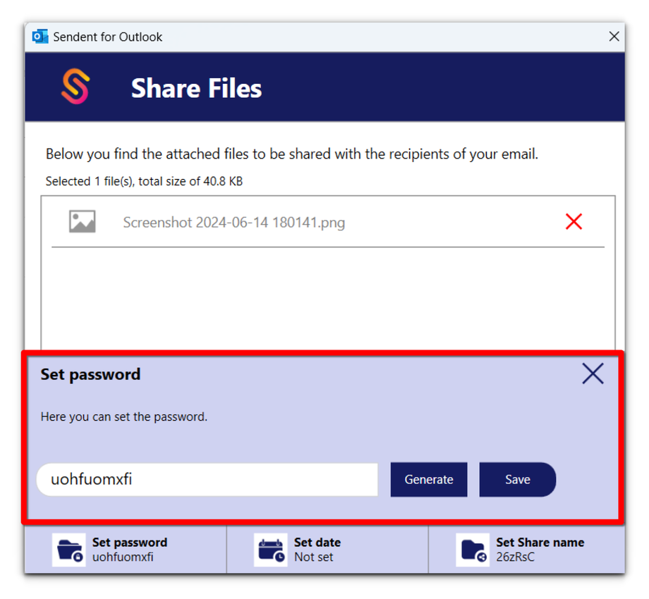 This value will be displayed in various dialogs within the Sendent interface. For instance, when you intend to share files from your Nextcloud server.