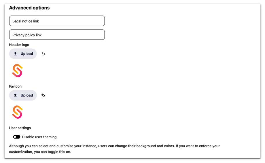 In addition to the basic customization options, the advanced settings provide further control over the appearance and functionality of your instance. Here are the features available: