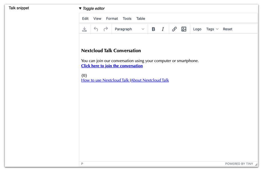 4. You will notice a "Toggle editor" button next to the respective snippet settings. Click this button to open the WYSIWYG editor and start editing your snippets.