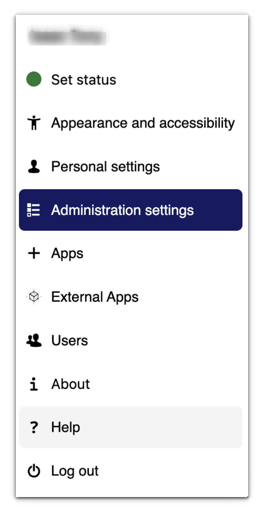 2. Click on your user avatar or name in the top right corner of the Nextcloud interface and then click on the "Administration Settings" option.