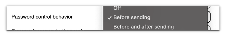 When set to "Before Sending," users are prompted to confirm the generated password or generate a new one before sharing files. This ensures that all shared links are protected with a password before they are distributed. This is ideal for environments where it is crucial to ensure that all shared links are secured before they reach the recipients.