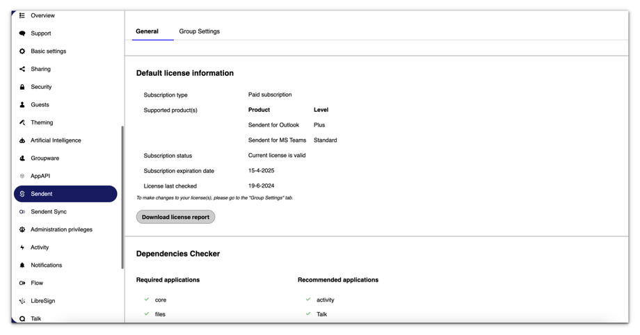 4. Navigate to the group settings section and switch to Sendent for Outlook option.