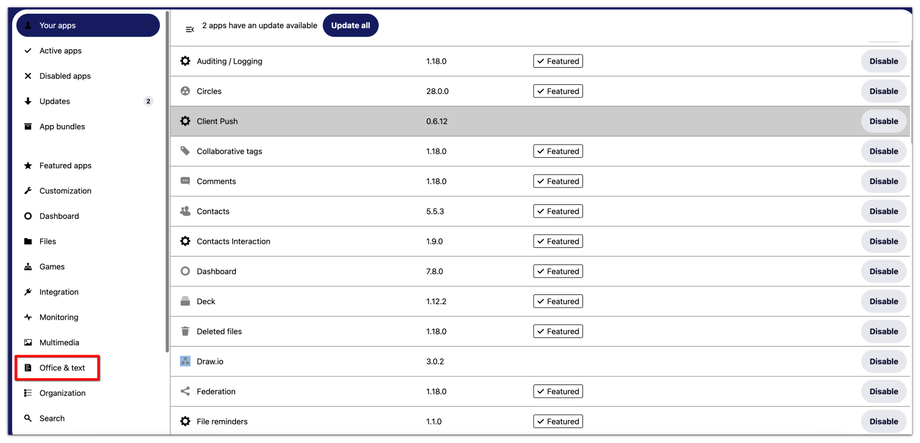 1. Login to your Nextcloud server environment web interface