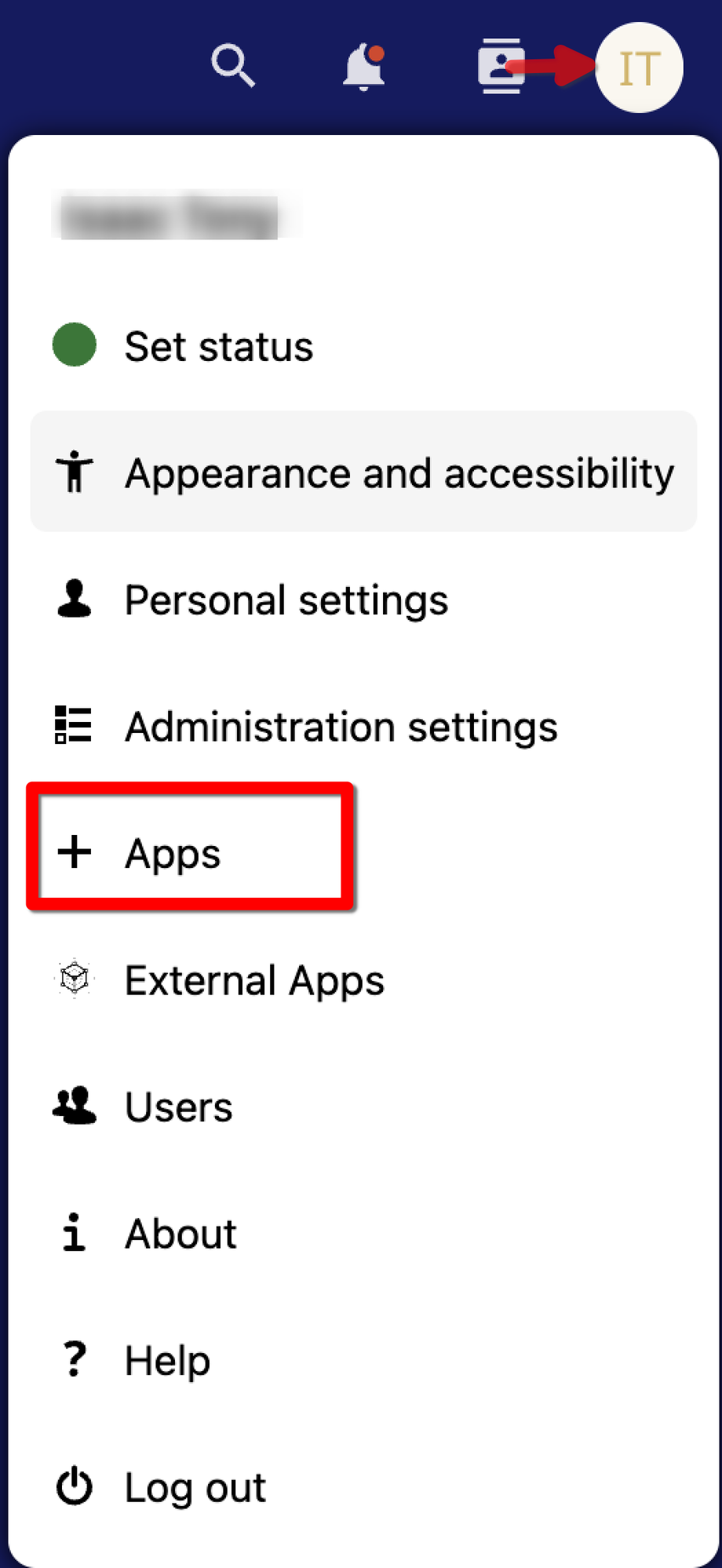 2. Click on your profile icon and click on "Apps."