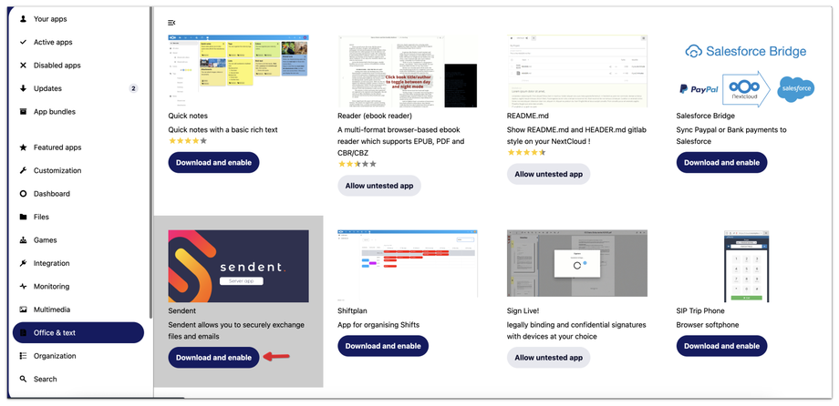 Installing the Sendent App for Nextcloud