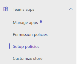 1. On the left side in the menu bar, navigate to 'Teams Apps' > 'Setup Policies'.