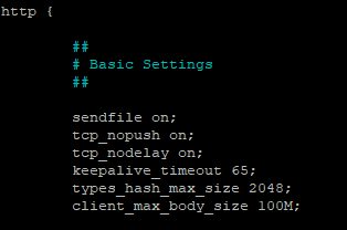 client_max_body_size 250M; (the maximum file size will be 250MB with upload, you can increase this though).