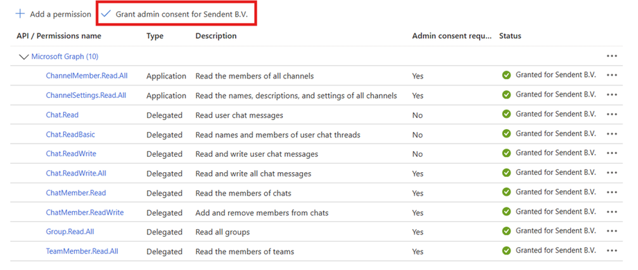 | ChannelMember.Read.All | Application | Read the members of all channels. |