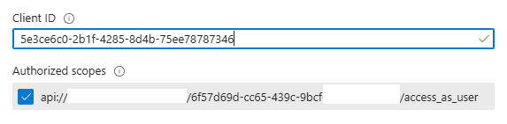 Last settings would be authorizing the client applications. Add the following two client applications and ensure the above made scope is authorized.
