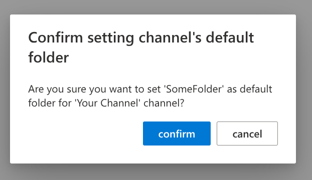 Set default folder for this channel: All files uploaded in this specific channel will be stored in the selected Nextcloud folder.