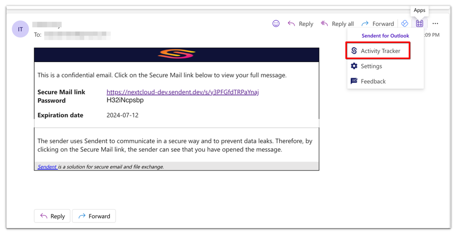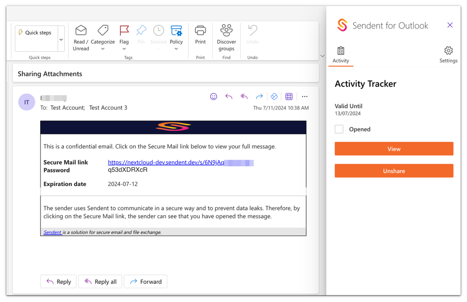 6. The Activity Tracker window displays the expiration date and the status of your shared documents.