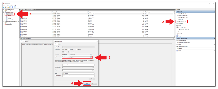 Viewing Outlook Errors in Windows Event Viewer