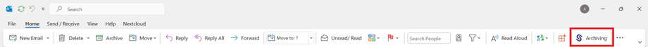If Archiving is enabled in your Sendent for Outlook, you may find the following button in your screen.