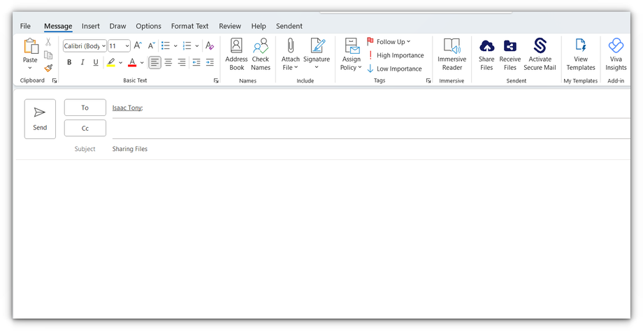 2. Enter the email address of the recipient(s) and an appropriate subject.