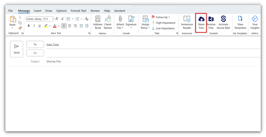3. Click the "Share Files" button. This button is located under the “Message” tab.