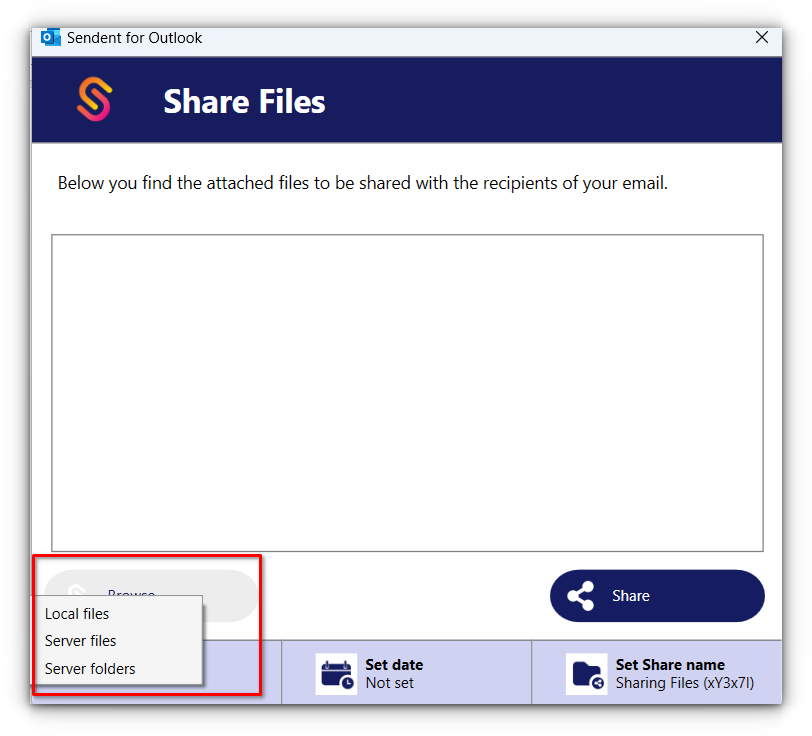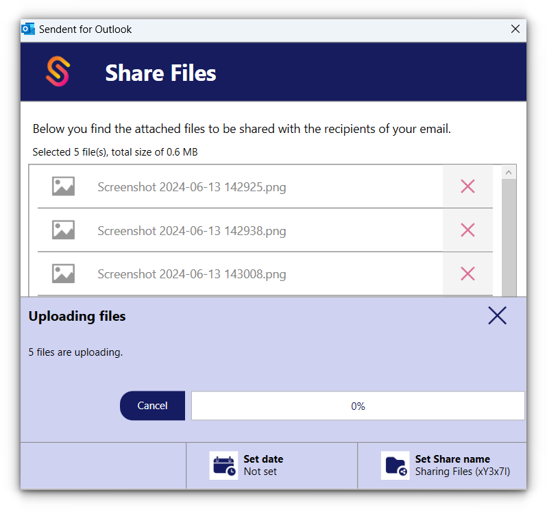 The Share Files feature enables users to upload attachments to their private Nextcloud server, either manually or automatically, without any size limitations. This feature ensures seamless and efficient file sharing by allowing users to manage large attachments effortlessly.