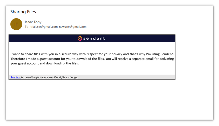 8. Once the upload is done, an email should be sent, as shown below, letting the user know that they have received a separate email to activate their guest account and download the files you have shared.