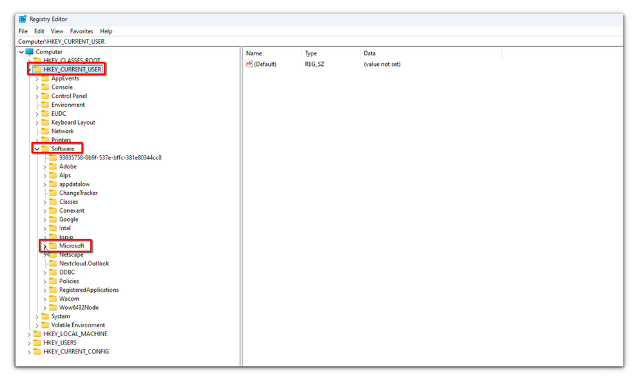 2. Click on the HKEY_CURRENT_USER option and click on Sofware from the options.